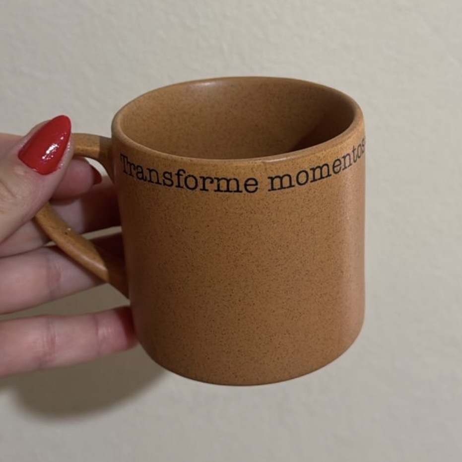 O Manifesto da To Home em Suas Mãos A Caneca Meg é muito mais que um item de mesa posta; é o lembrete diário do propósito da To Home: transformar momentos simples em memórias especiais. Com um acabamento matte (fosco) liso e sofisticado, ela oferece um toque aveludado e uma estética contemporânea. Além da frase icônica que envolve toda a peça em 360º, ela guarda um segredo: ao terminar sua bebida, você encontra no fundo interno a pergunta: “Já viveu hoje?”. Um convite potente para despertar para o presente.